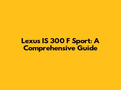Lexus IS 300 F Sport: A Comprehensive Guide