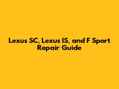 Lexus SC/IS/F Sport: Your Repair Guide