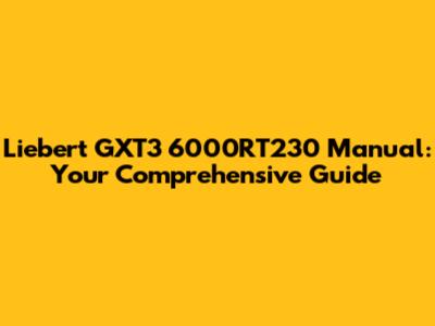 • Liebert GXT3 6000RT230 Manual PDF: Download the official manual from the manufacturer's website. This is your primary resource for all technical details.