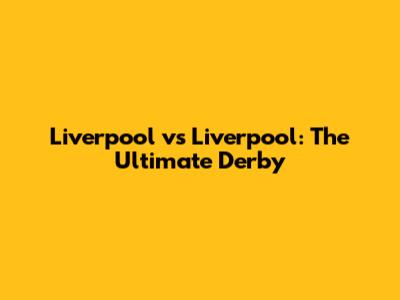 Liverpool Vs Liverpool: The Ultimate Derby