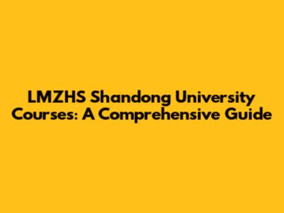 LMZHS Shandong University Courses: A Comprehensive Guide