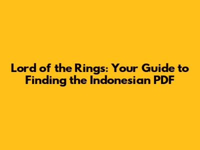 Alright, so you’re ready to embark on this epic quest for the Indonesian PDF of The Lord of the Rings? Here are a few places you might want to check out, along with some tips to help you on your search.