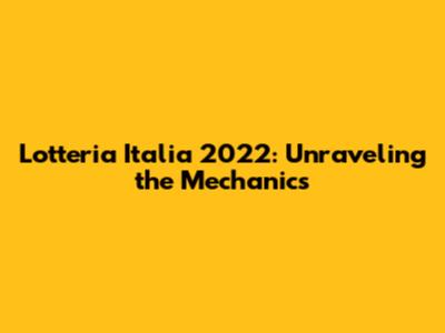 Lotteria Italia 2022: Unraveling The Mechanics