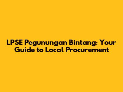 LPSE Pegunungan Bintang: Your Guide To Local Procurement