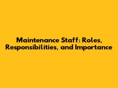 Maintenance Staff: Roles, Responsibilities, And Importance