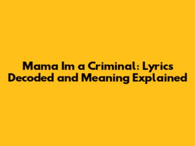 Mama I'm A Criminal: Lyrics Decoded And Meaning Explained