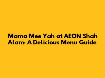 Mama Mee Yah At AEON Shah Alam: A Delicious Menu Guide