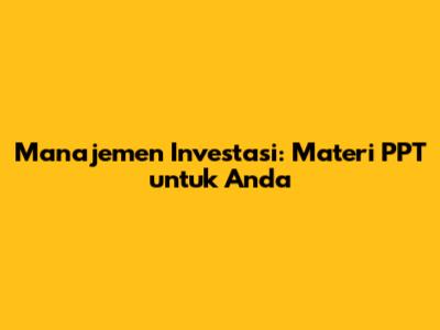 Manajemen Investasi: Materi PPT Untuk Anda