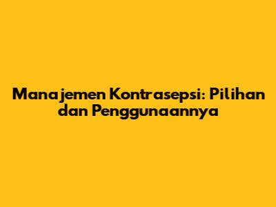 Manajemen Kontrasepsi: Pilihan Dan Penggunaannya