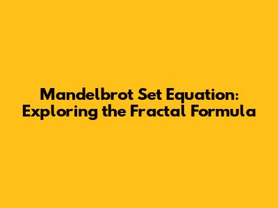 Hey guys! Ever heard of something so mind-bendingly cool that it keeps mathematicians and artists alike hooked for decades? Well, buckle up, because we're diving deep into the fascinating world of the Mandelbrot set and its defining equation. This isn't just some boring math stuff; it's a gateway to understanding complexity, beauty, and the infinite hiding within simple formulas. So, grab your metaphorical hiking boots, and let’s explore!