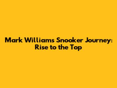Mark Williams Snooker Journey: Rise To The Top