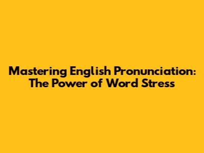 Mastering English Pronunciation: The Power Of Word Stress