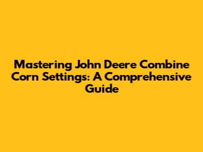 Mastering John Deere Combine Corn Settings: A Comprehensive Guide
