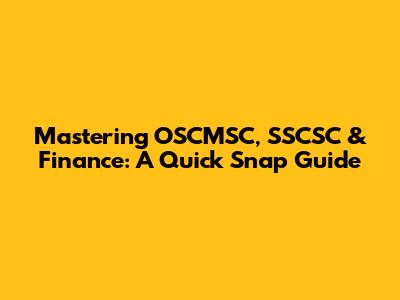 Mastering OSCMSC, SSCSC & Finance: A Quick Snap Guide