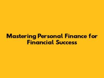 Mastering Personal Finance For Financial Success