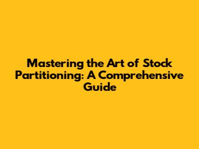 Mastering The Art Of Stock Partitioning: A Comprehensive Guide