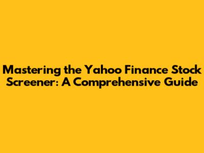 Mastering The Yahoo Finance Stock Screener: A Comprehensive Guide