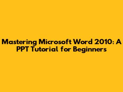 Mastering Word 2010: A PPT Tutorial For Beginners