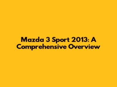 Diving into the Design and Features of the 2013 Mazda 3 Sport