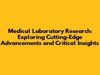 Medical Laboratory Research: Advancements & Insights