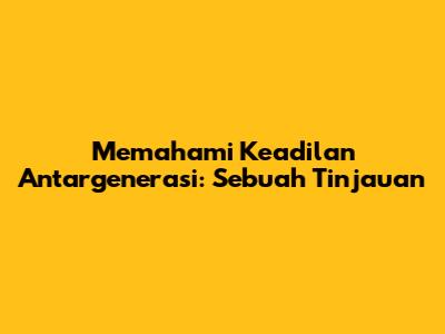 Memahami Keadilan Antargenerasi: Sebuah Tinjauan