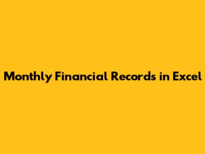 Monthly Financial Records In Excel