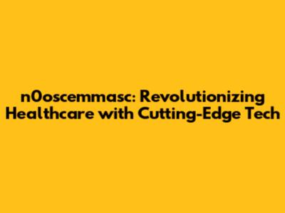 N0oscemmasc: Revolutionizing Healthcare With Cutting-Edge Tech