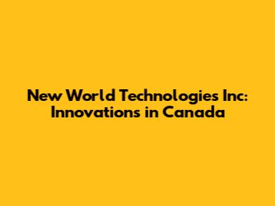 New World Technologies Inc: Innovations In Canada