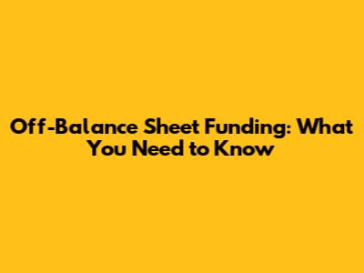 Off-Balance Sheet Funding: What You Need To Know