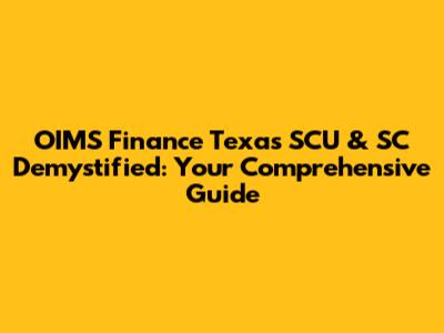 OIMS Finance Texas SCU & SC Demystified