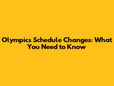 Olympics Schedule Changes: What You Need To Know