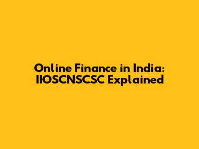 Online Finance In India: IIOSCNSCSC Explained