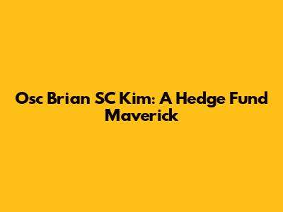 Osc Brian SC Kim: A Hedge Fund Maverick