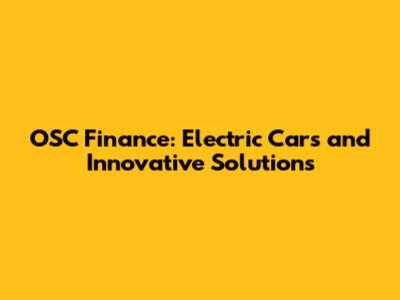 OSC Finance: Electric Cars And Innovative Solutions