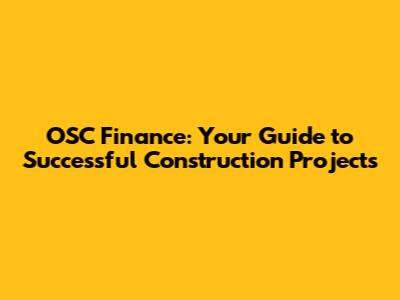 OSC Finance: Your Guide To Successful Construction Projects