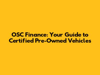 OSC Finance: Your Guide To Certified Pre-Owned Vehicles