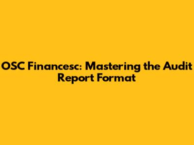 OSC Financesc: Mastering The Audit Report Format