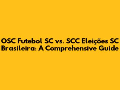 OSC Futebol SC Vs. SCC Eleições SC Brasileira: A Comprehensive Guide