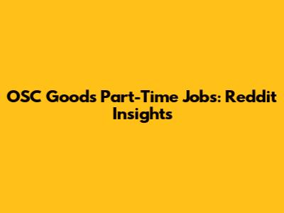 OSC Goods Part-Time Jobs: Reddit Insights