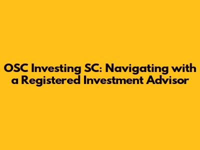 OSC Investing SC: Navigating With A Registered Investment Advisor