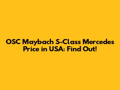OSC Maybach S-Class Mercedes Price In USA: Find Out!