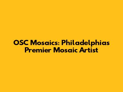 Hey guys! Ever wondered about those stunning mosaic artworks popping up around Philadelphia? Chances are, you've stumbled upon the incredible work of OSC Mosaics. This isn't just about arranging tiles; it's about transforming spaces and telling stories through art. Let's dive into what makes OSC Mosaics a standout artist in the City of Brotherly Love.