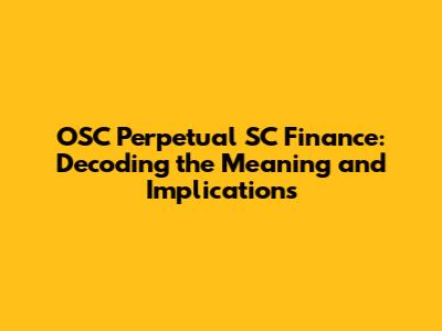 OSC Perpetual SC Finance: What You Need To Know