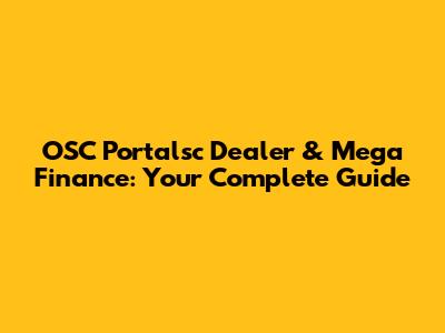 OSC Portalsc Dealer & Mega Finance: Your Complete Guide