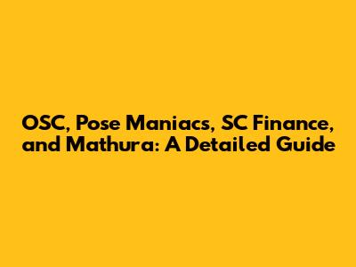 OSC, Pose Maniacs, SC Finance, And Mathura: A Detailed Guide