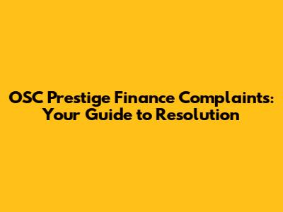 OSC Prestige Finance Complaints: Your Guide To Resolution