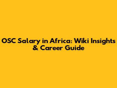 OSC Salary In Africa: Wiki Insights & Career Guide