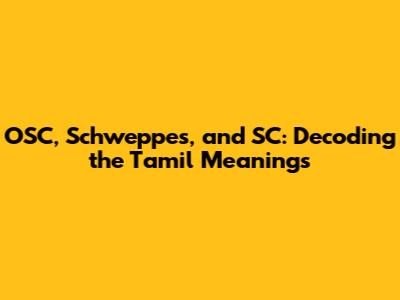 OSC, Schweppes, And SC: Decoding The Tamil Meanings