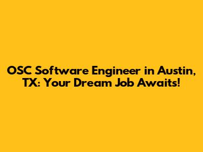 OSC Software Engineer In Austin, TX: Your Dream Job Awaits!