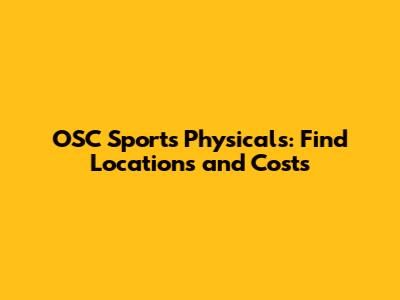 OSC Sports Physicals: Find Locations And Costs